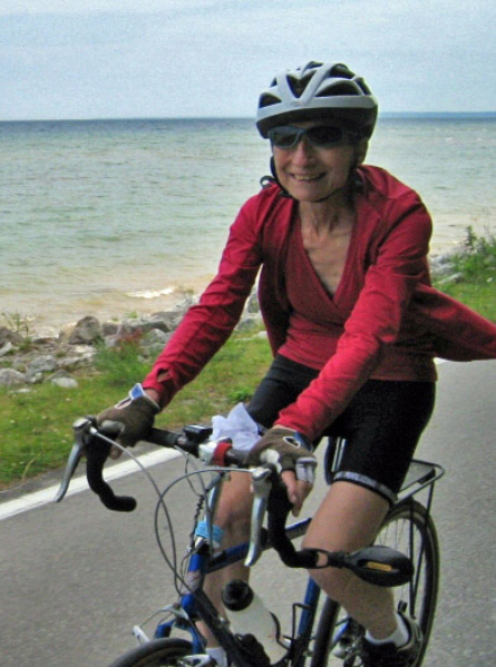 Judy biking along Lake Michigan July 2008 |